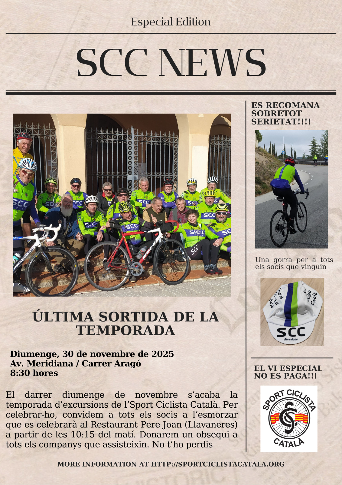 - Ha sortit el Butlleti 797 1er Semestre 2026 de l'Sport Ciclista Català. Trobareu les excursions del primer semestre a més de les seccions habituals de Les Nostres Coses, Passatemps, Secretaria, etc. Podeu descarregar-lo de la web en format electrònic o anar a buscar-lo al Centre Cívic de Torre Llobeta. Els socis el rebreu a casa vostra els propers dies.