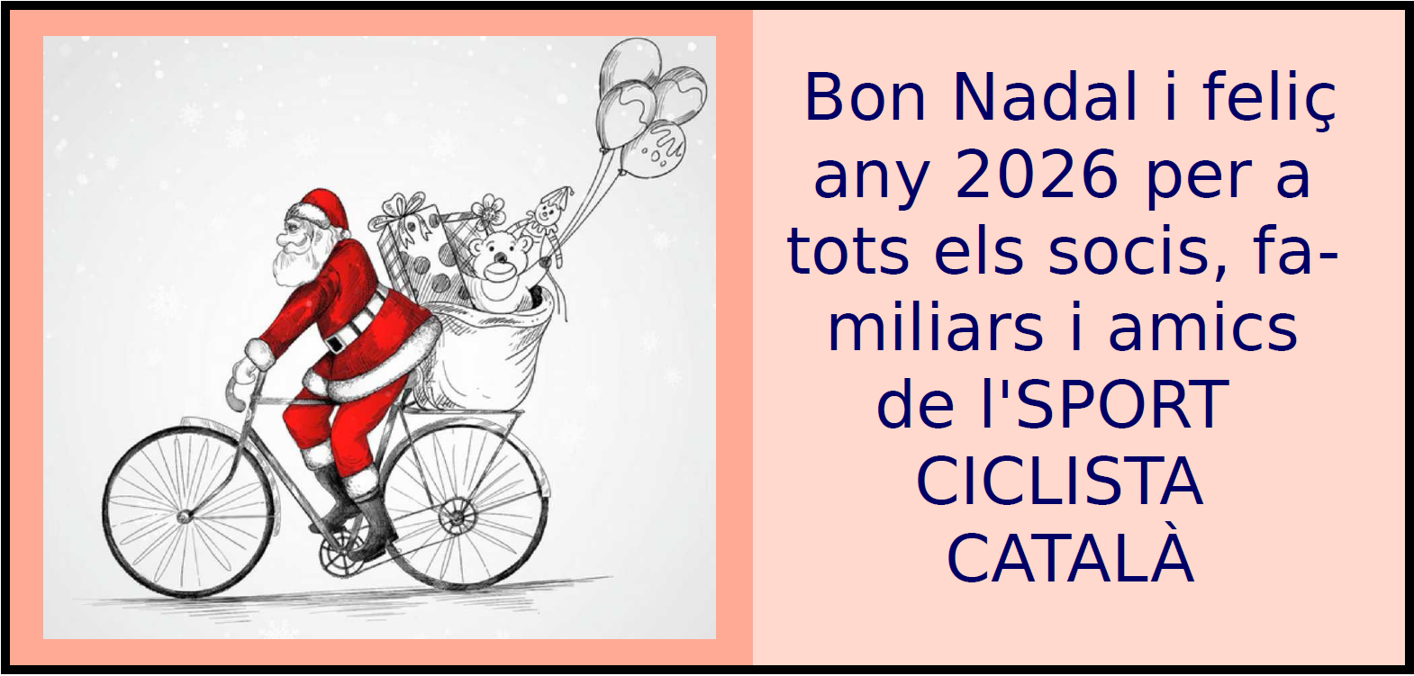 - L'Sport Ciclista Català desitja unes Bones Festes de Nadal a tots els seus socis, familiars i amics. També volem que tingueu un bon any 2026, ple de sortides en bici. Nadala SCC